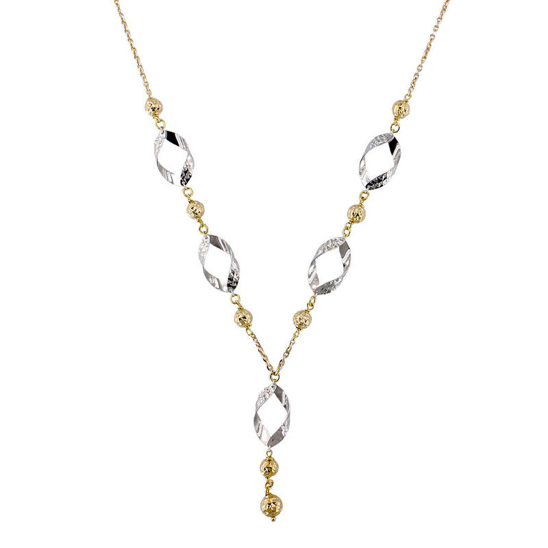 Collana Donna Sfere Diamantate Bicolore Oro Bianco Oro Giallo 18 kt 45 cm