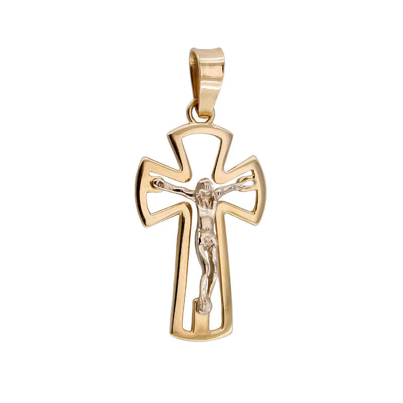Pendente Collana Forma Croce In Oro Giallo 18 kt con Gesรน oro bianco