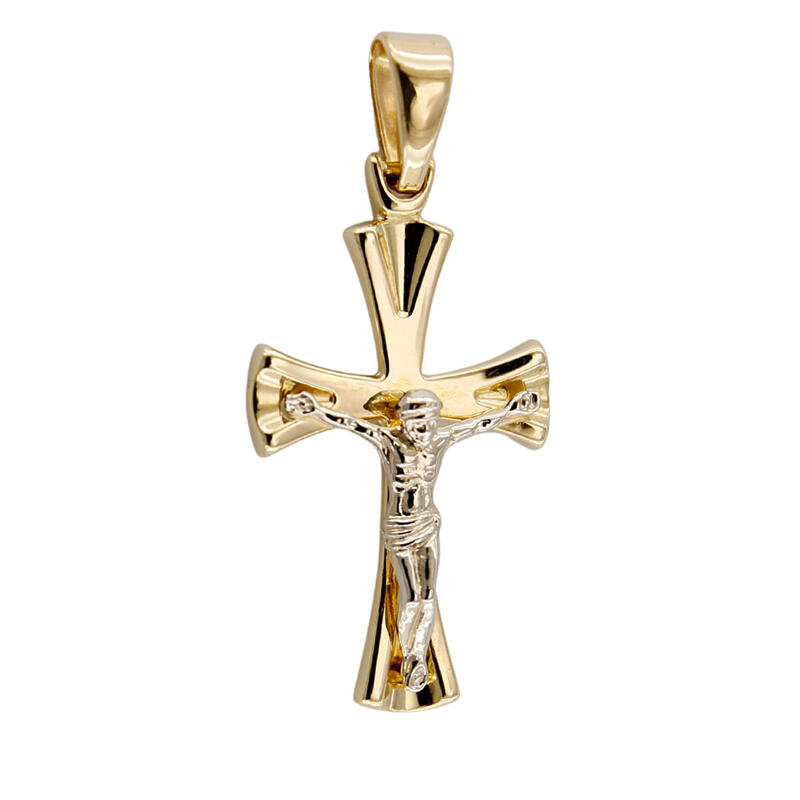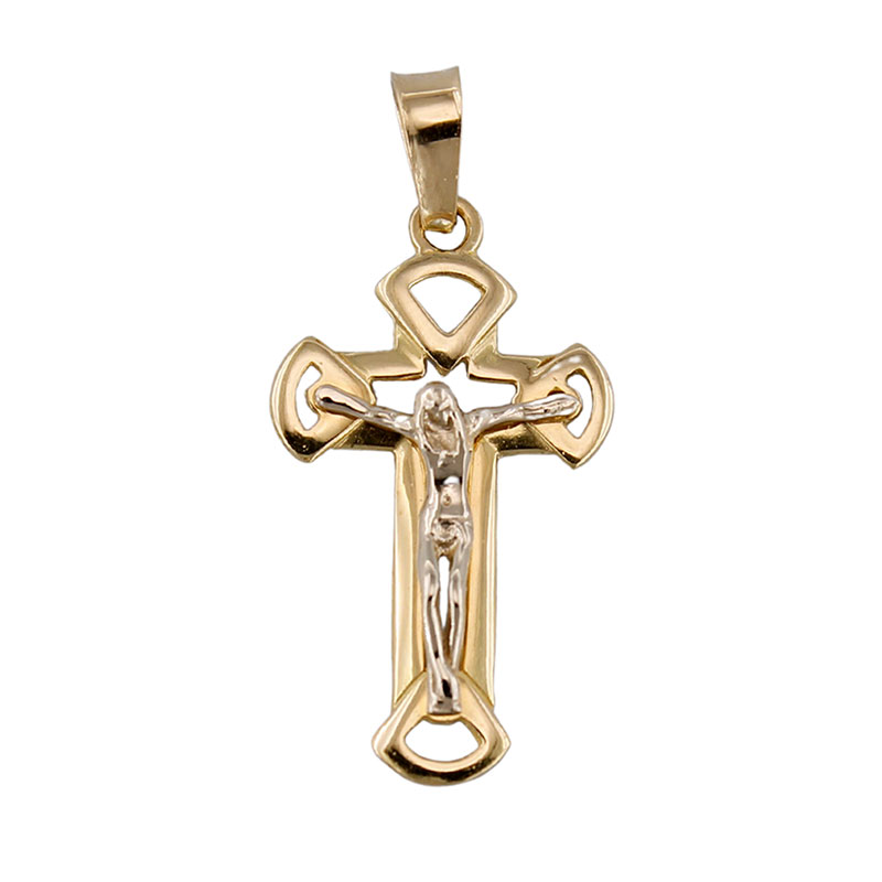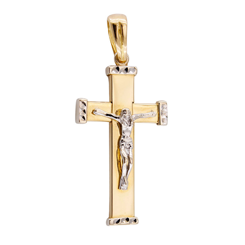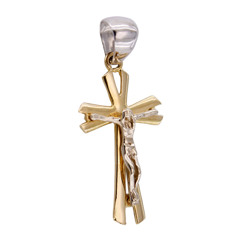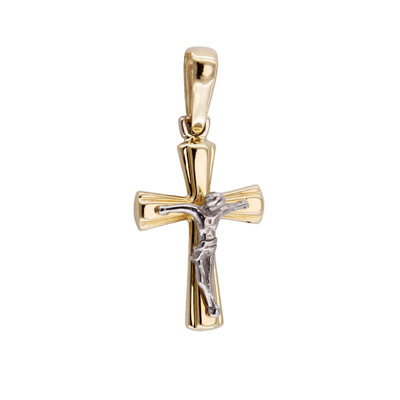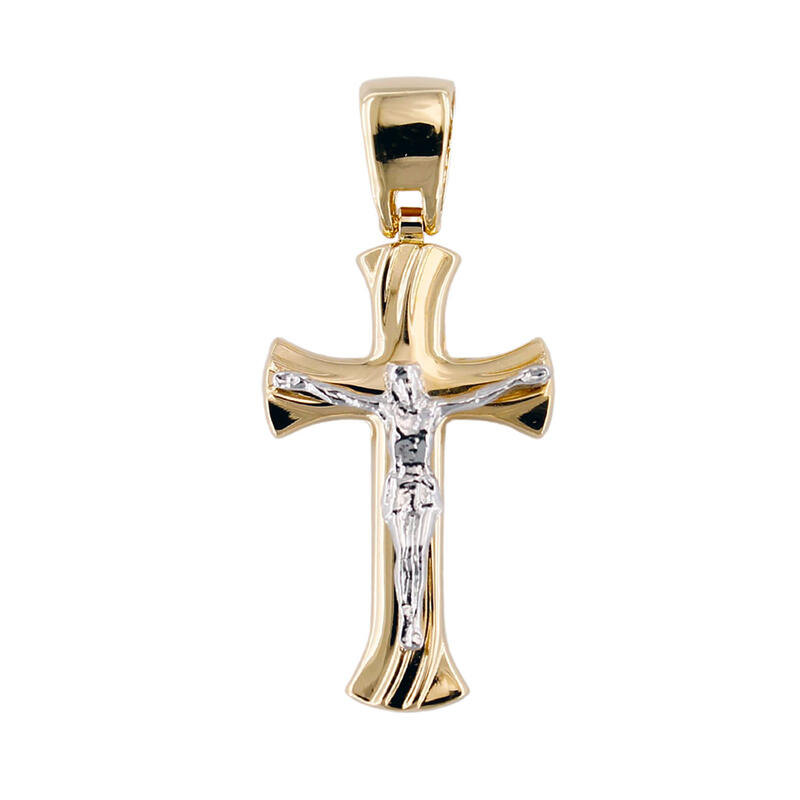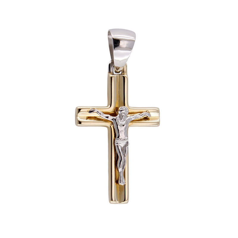 Croce Pendente per Collana in Oro Giallo 18 kt con Gesรน in oro Bianco