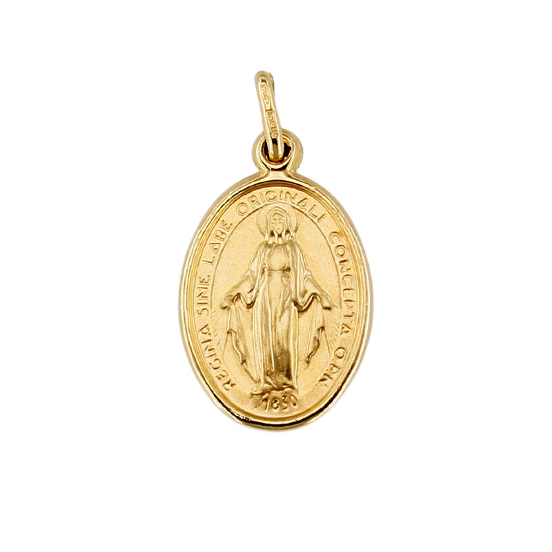 Ciondolo Collana Medaglietta Madonna di Lourdes Miracolosa In Oro Giallo 18 kt