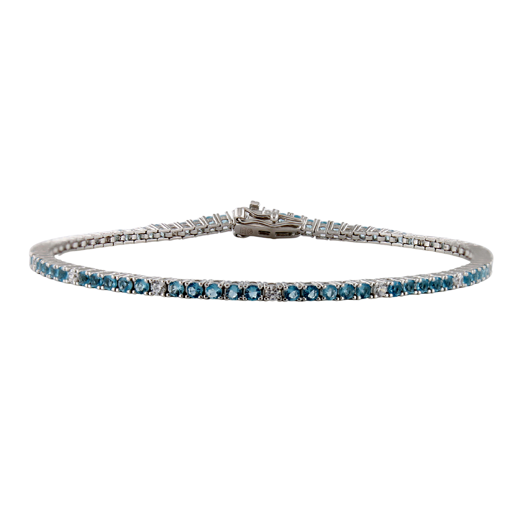 Bracciale Donna Tennis in Argento 925 con Zirconi Azzurri e Bianchi da 2 mm