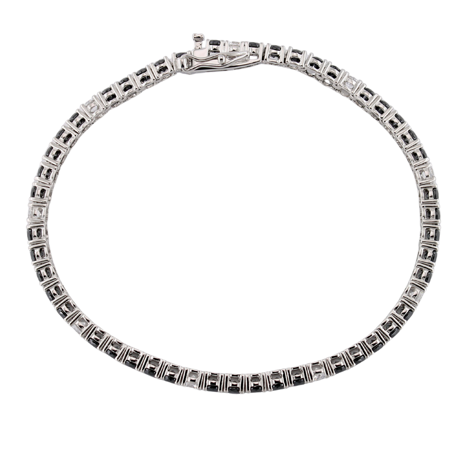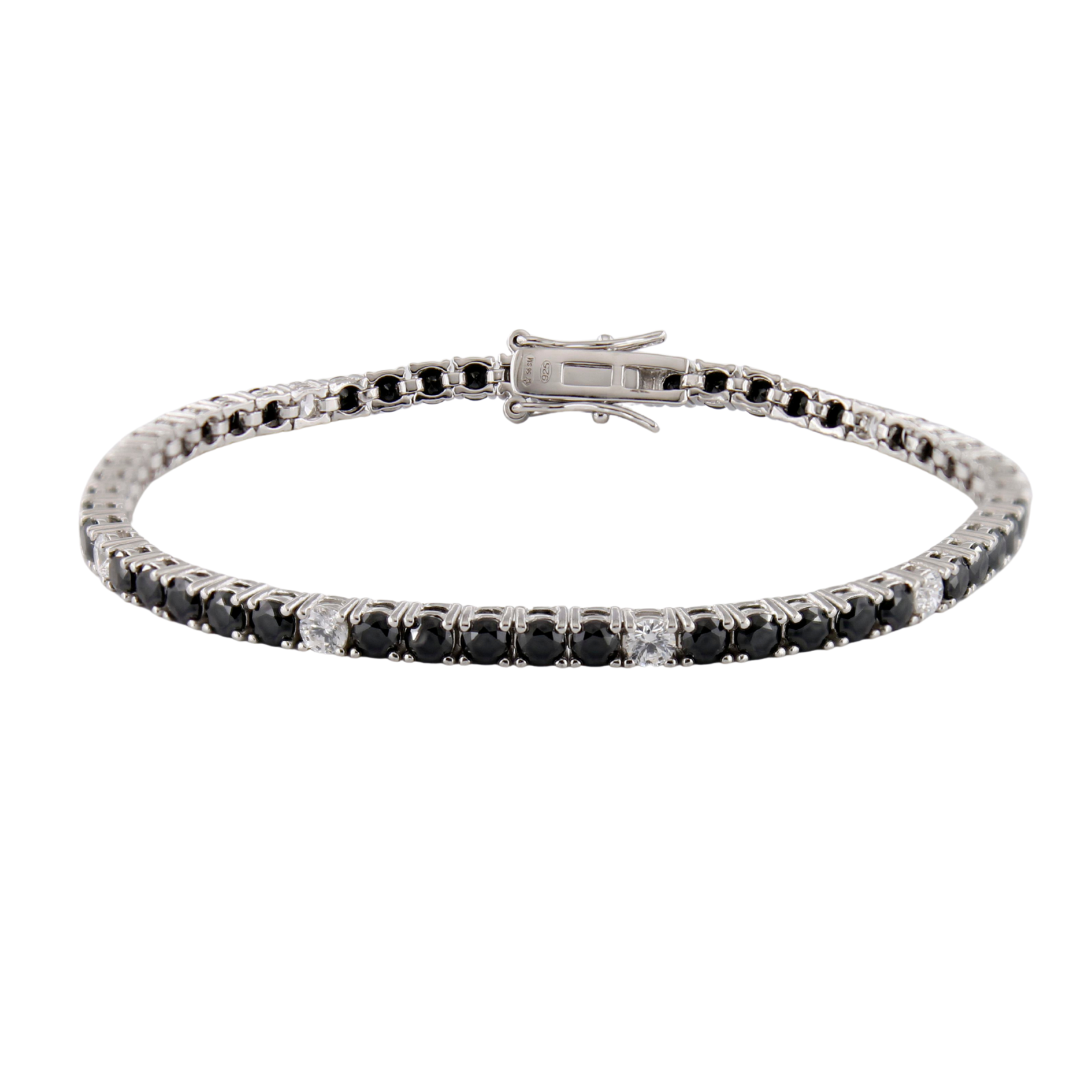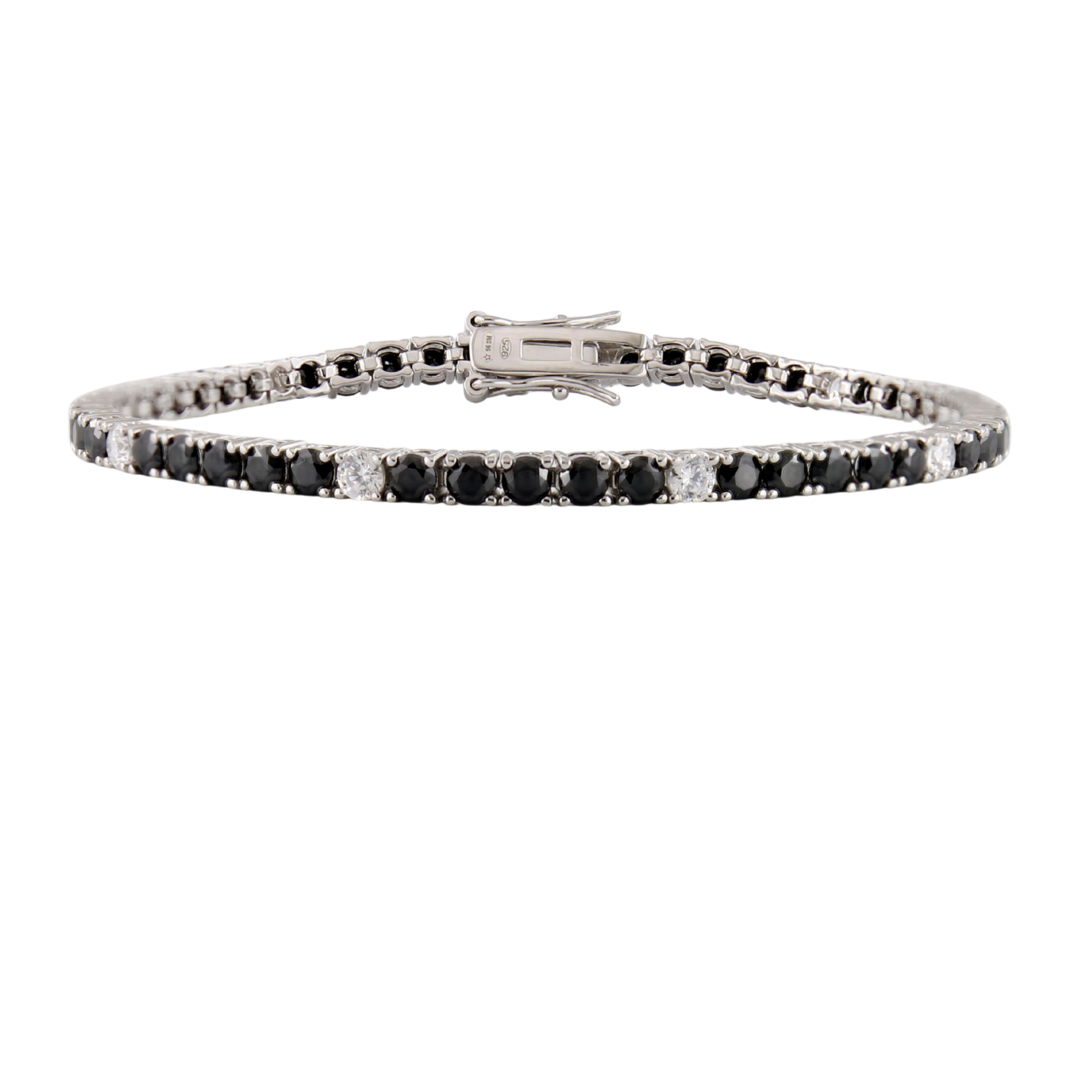 Bracciale Tennis ideale sia per Donna che da Uomo In Argento 925 lucido con Zirconi Bianchi e Neri da 3 mm.