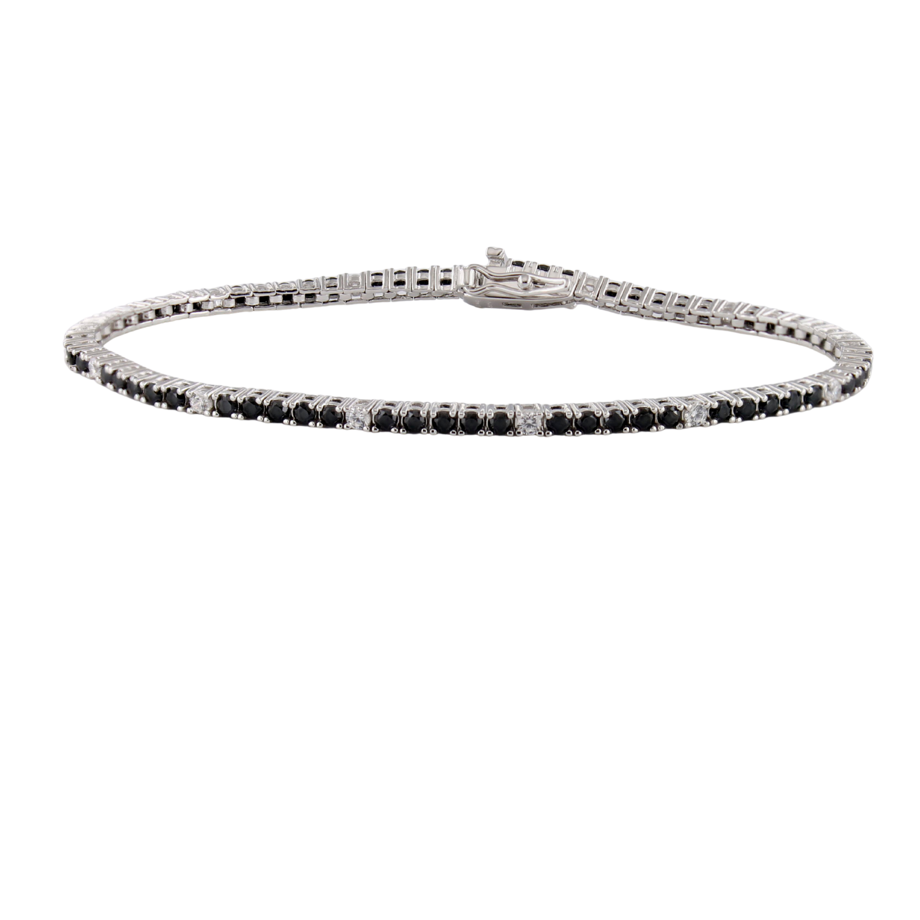 Bracciale Tennis ideale sia per Donna che da Uomo In Argento 925 lucido con Zirconi Bianchi e Neri da 2 mm.