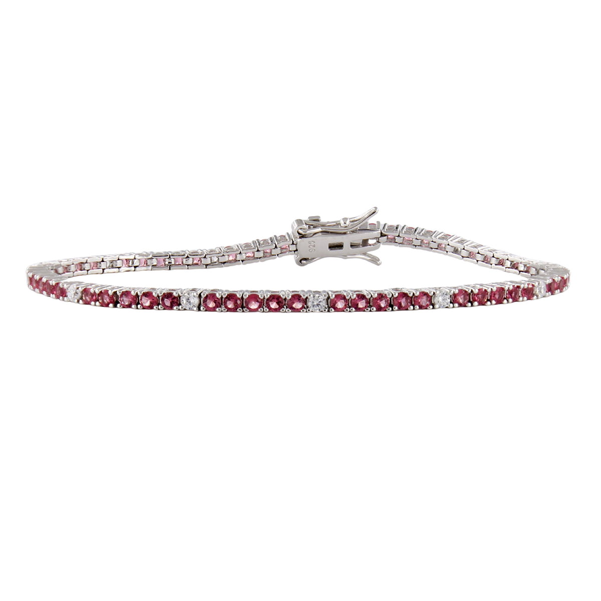 Bracciale Tennis Bimba in Argento 925 con Zirconi Rosa e Bianchi
