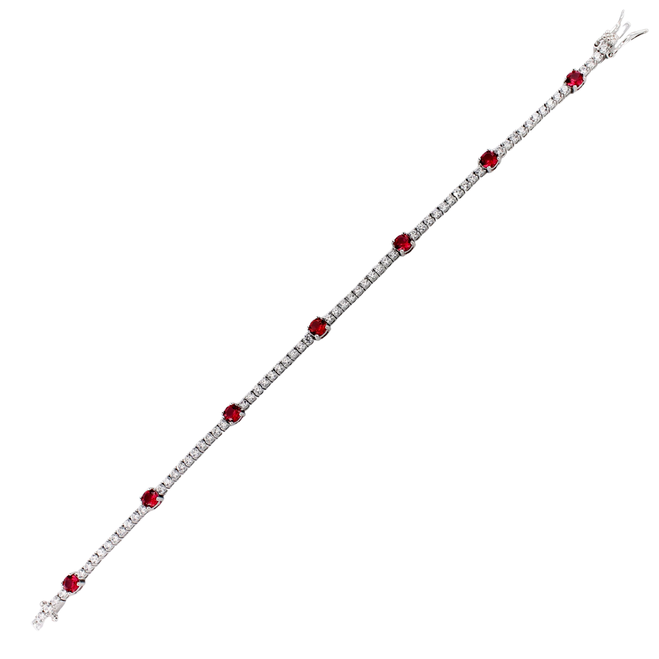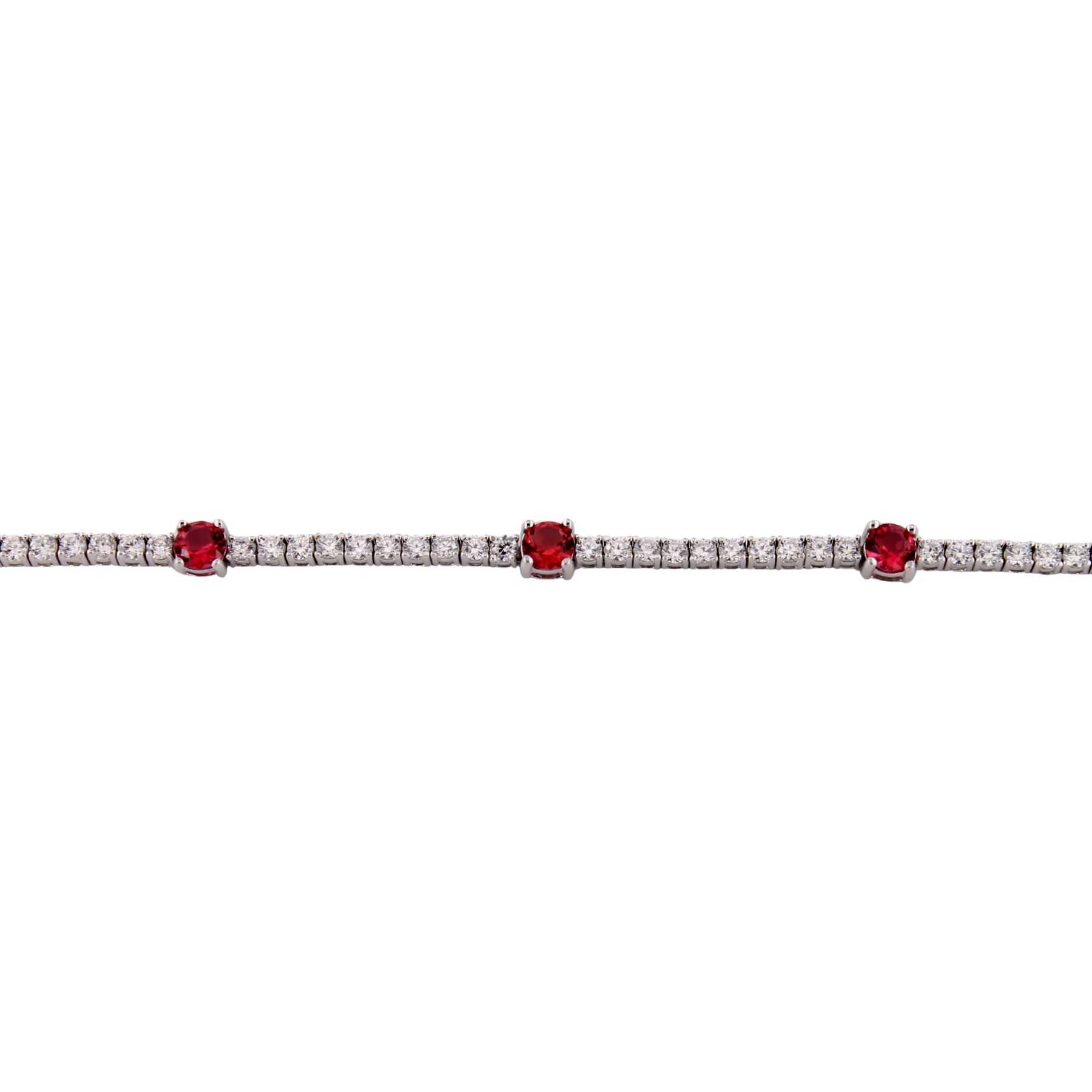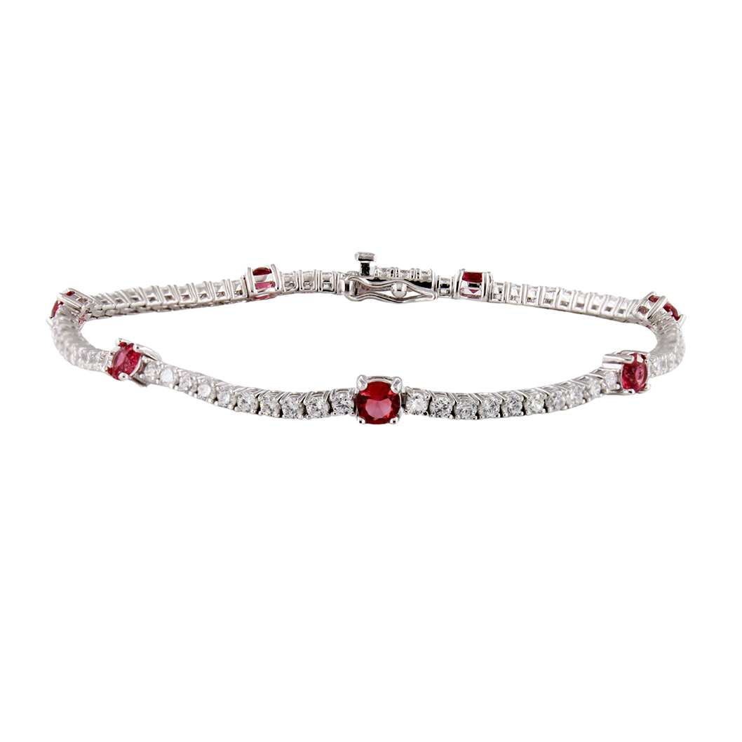 Bracciale Tennis da Donna In Argento 925 lucido con Zirconi bianchi da 2.20 mm e Zirconi Rosso Rubino da 4 mm.