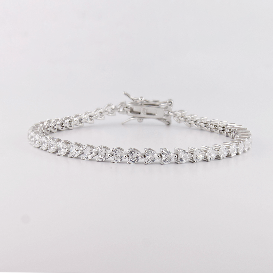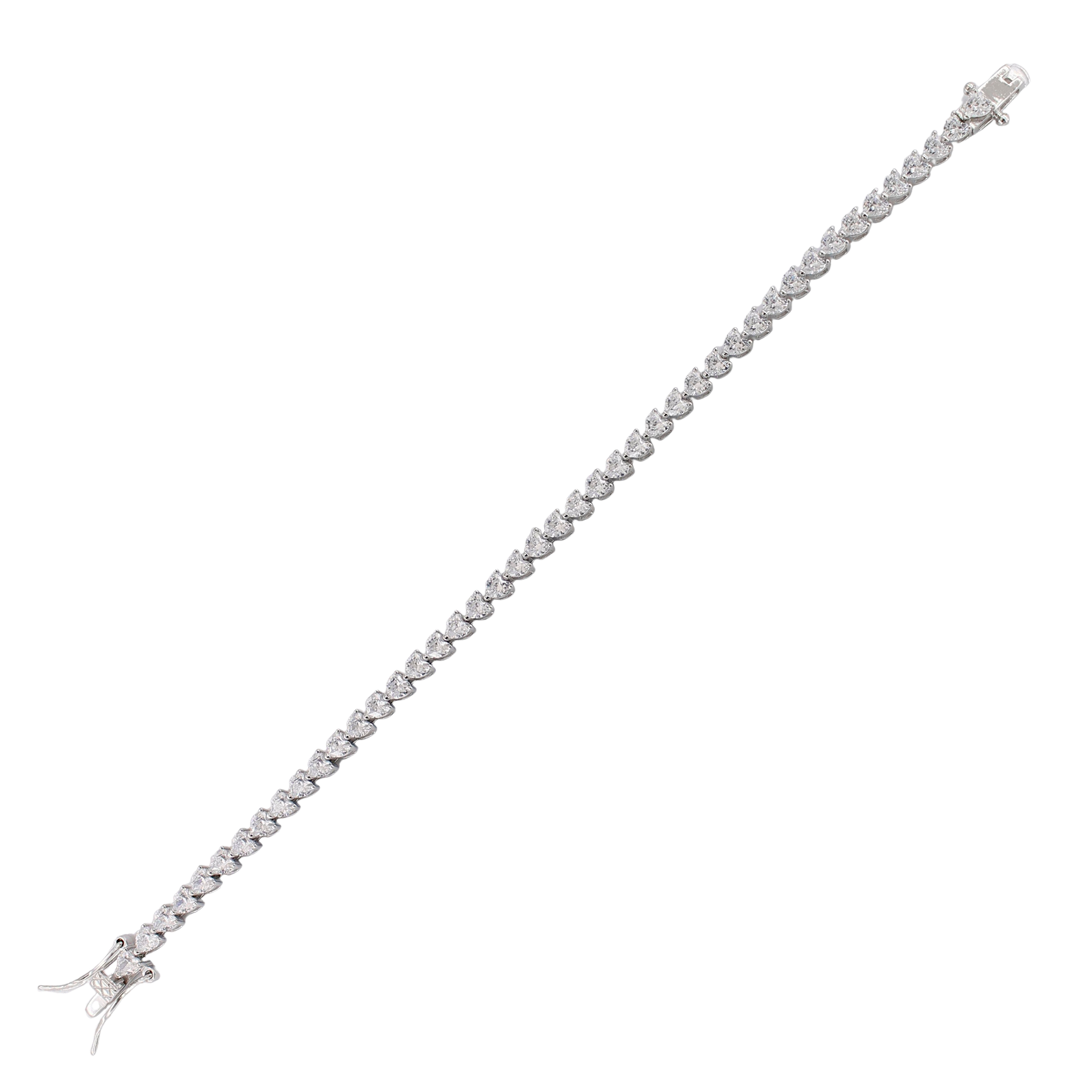Bracciale Tennis da Donna/Ragazza In Argento 925 lucido con Zirconi taglio Cuore da 3 mm.
