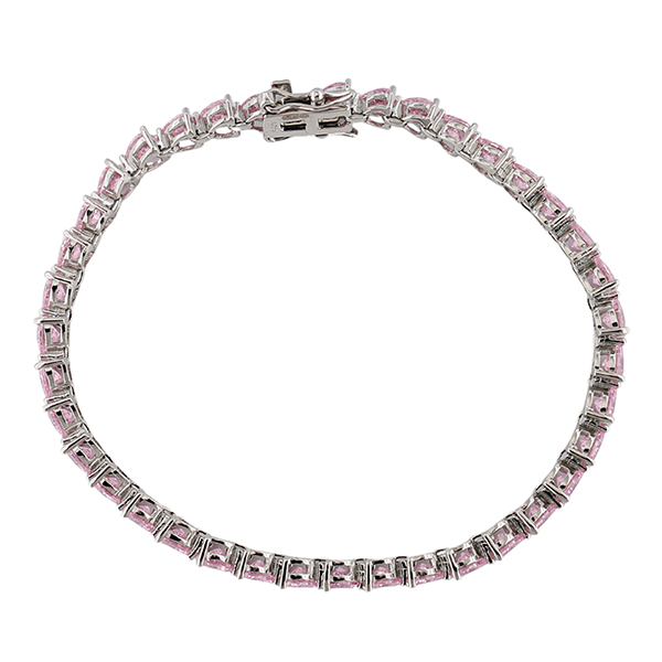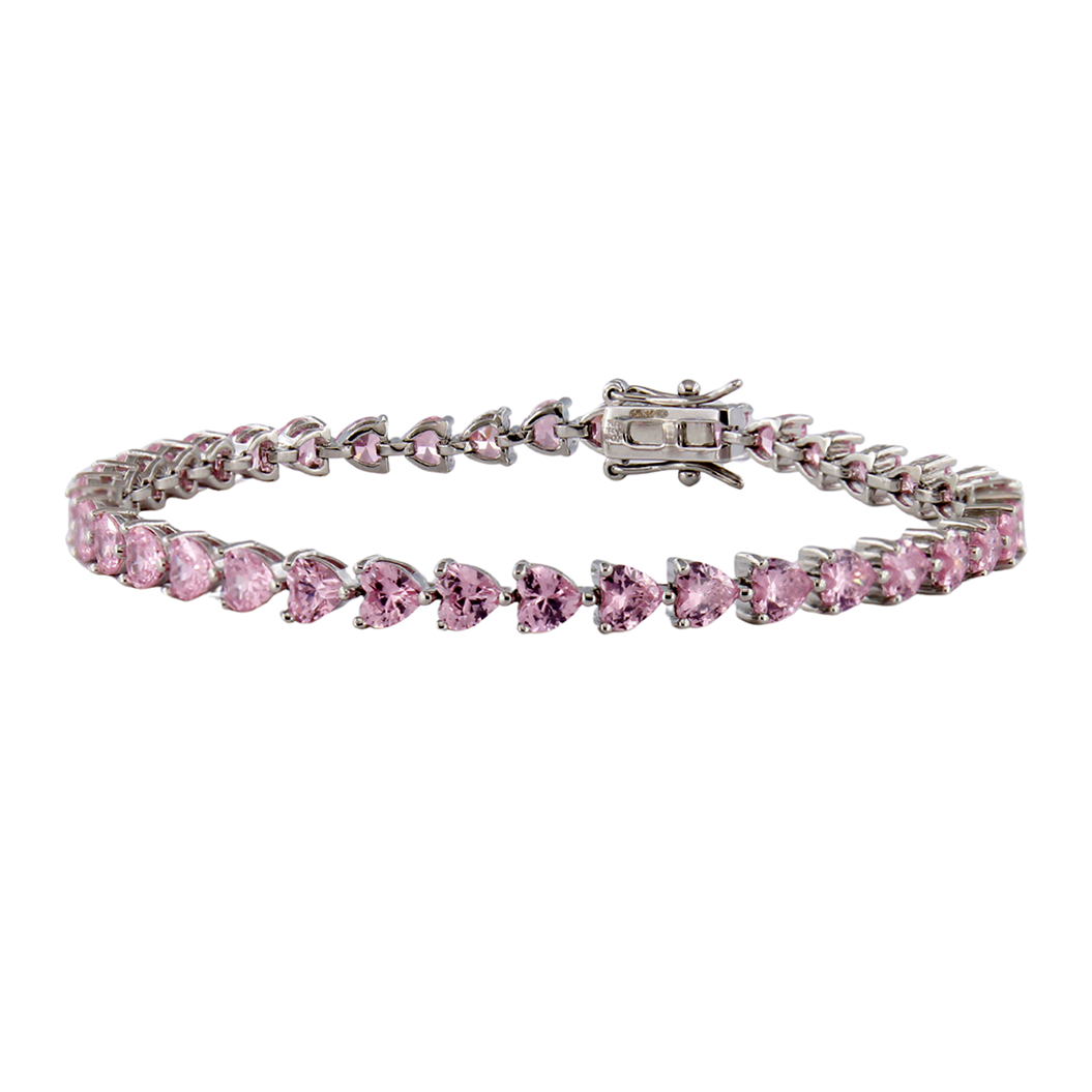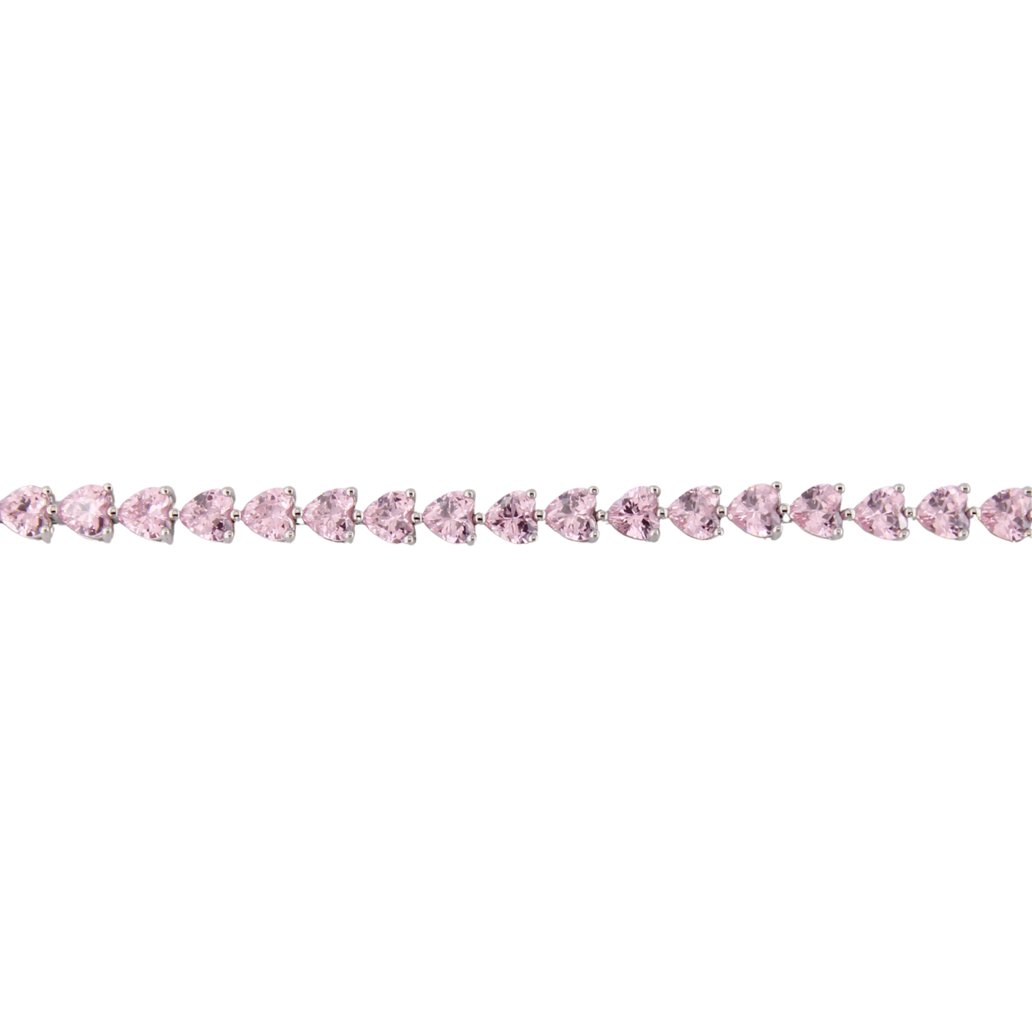 Bracciale Tennis da Donna/Ragazza In Argento 925 lucido con Zirconi taglio Cuore Rosa da 4 mm.
