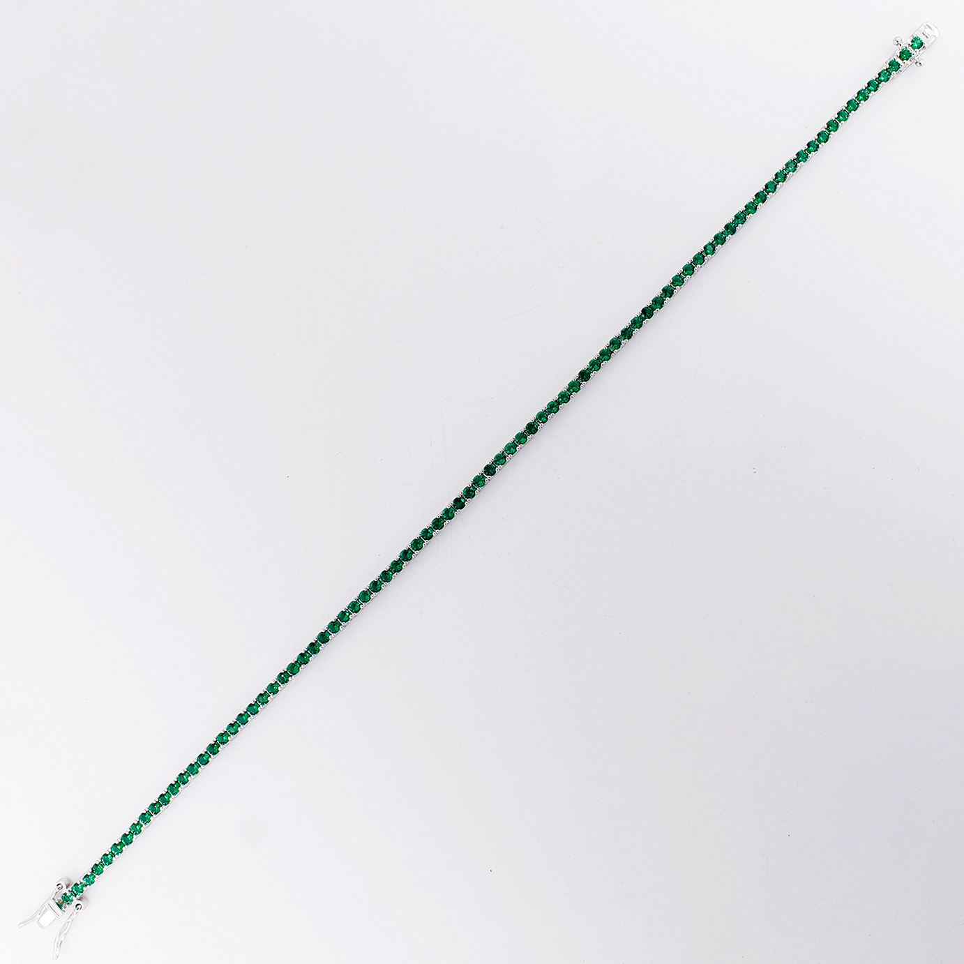 Bracciale Tennis ideale sia per Donna che da Uomo In Argento 925 lucido con Zirconi verde smeraldo da 2 mm.