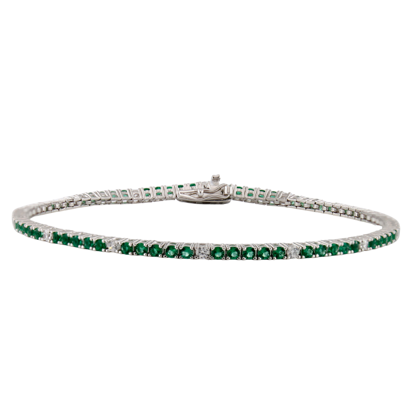 Bracciale Tennis da Uomo In Argento 925 lucido con Zirconi Verde smeraldo e bianchi da 2,20 mm.