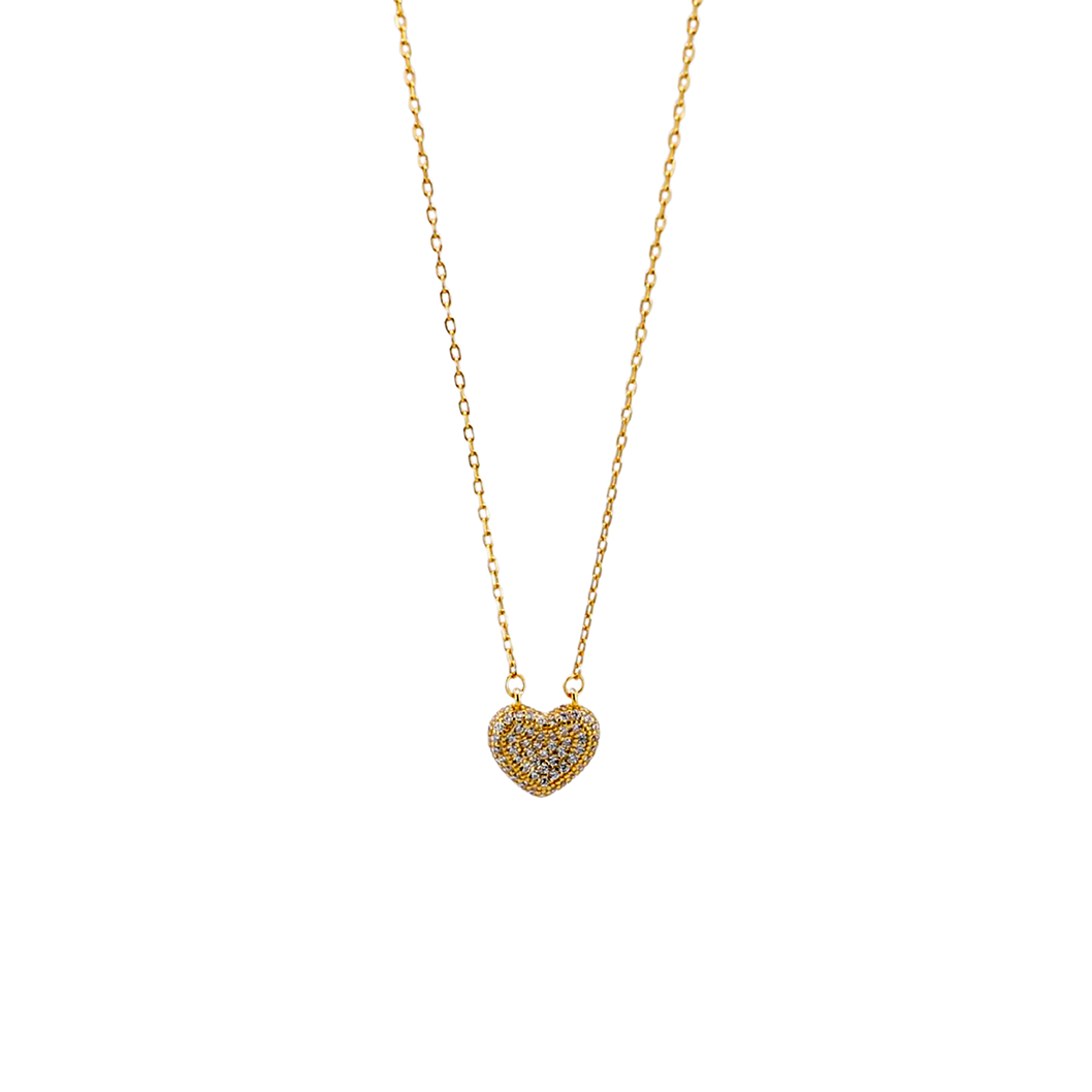 Collana donna in Argento 925 Oro giallo Cuore e Pavè di Zirconi