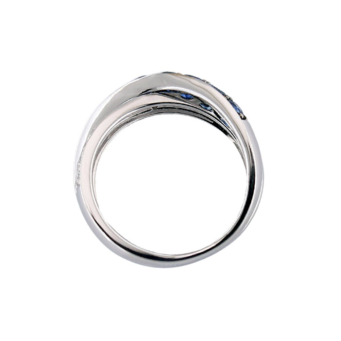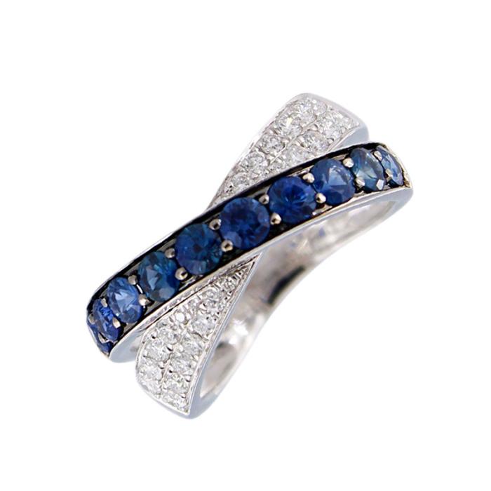 Anello Veretta da Donna in Oro bianco 18 kt con 10 Zaffiri Naturali da 1,39 ct taglio Brillante montati su base in Oro brunito intrecciati su Diamanti Naturali da 0,46 ct G color vvs1.