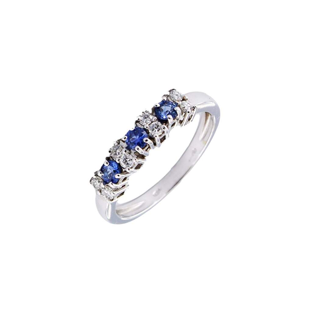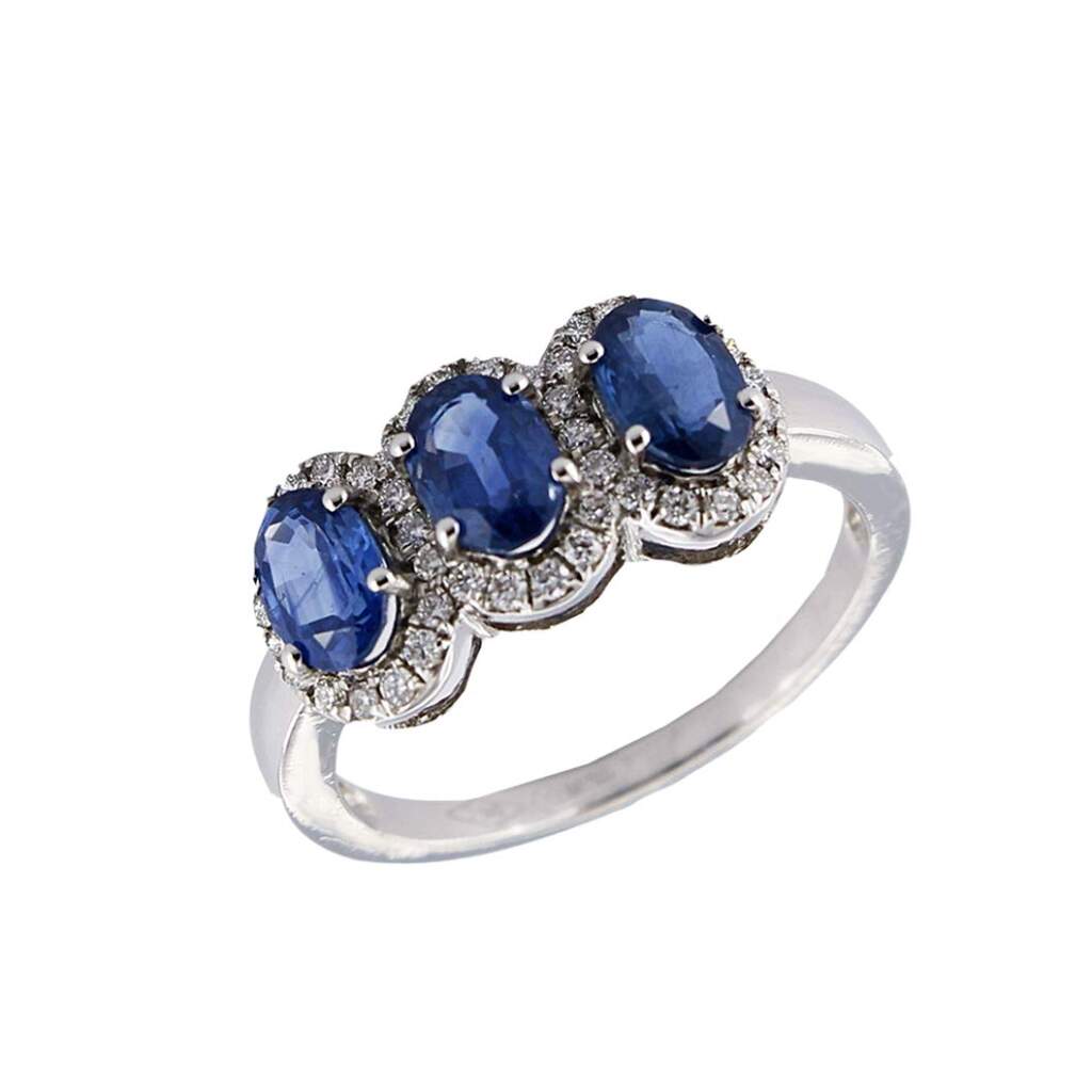Anello Trilogy Donna Oro Bianco 18 kt Zaffiri E Diamanti Naturali