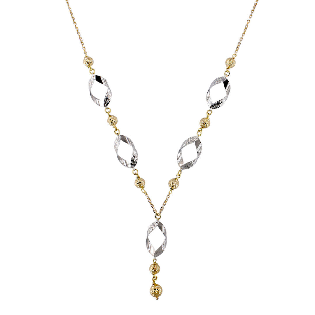 Collana Collier in Oro Giallo e Bianco 18 kt Sfere ed Elementi Diamantati a laser