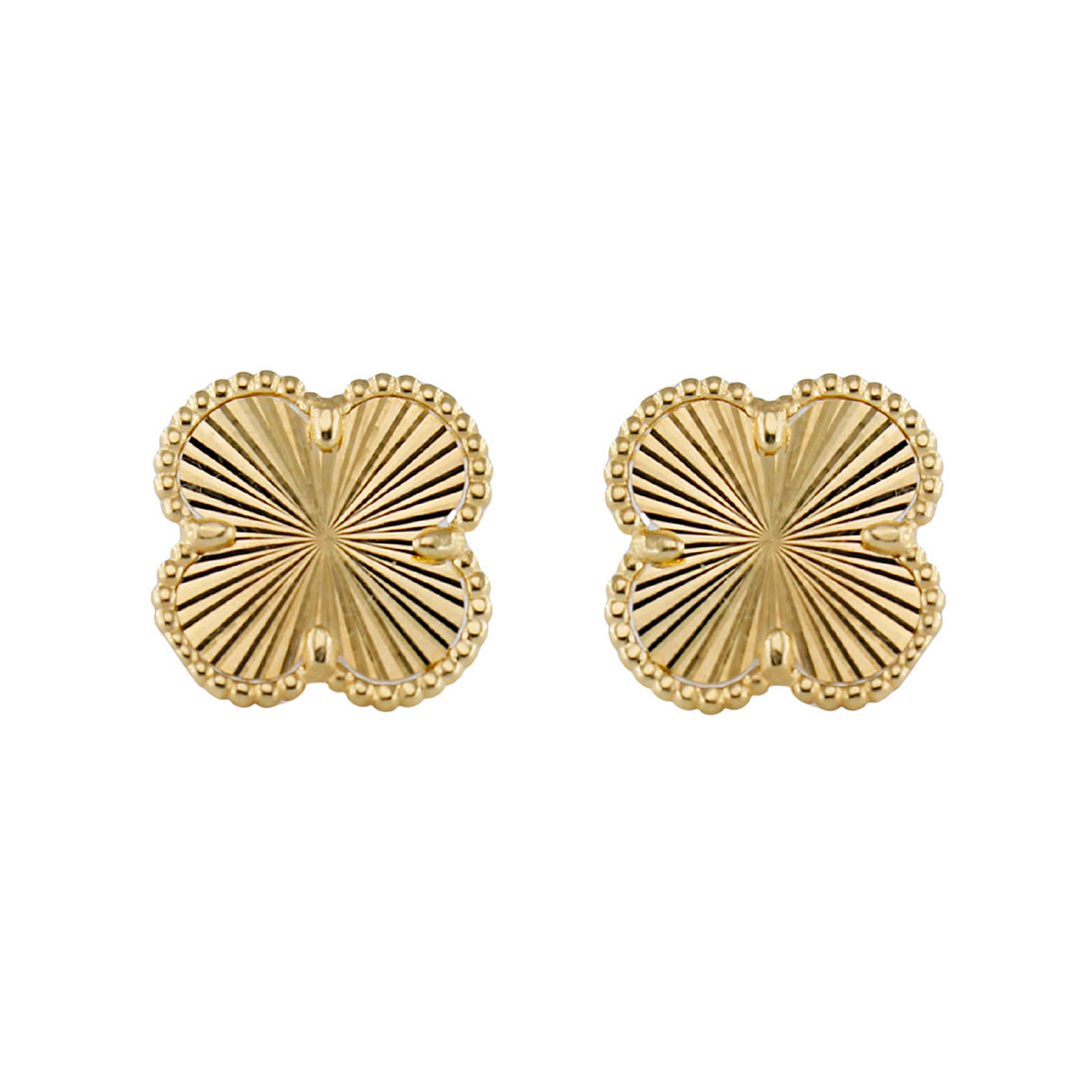 Orecchini a lobo da Donna a forma di Quadrifoglio in Oro Giallo 18 kt diamantatI a Laser di ultima generazione.ย