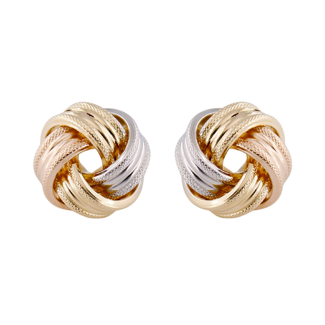 Orecchini Donna Nodo Oro Giallo Bianco e Rosa 18 kt Laser 14 mm