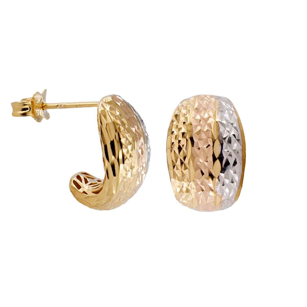 Orecchini Donna tre colori Oro 18 kt Giallo Rosa e Bianco diamantati Laser