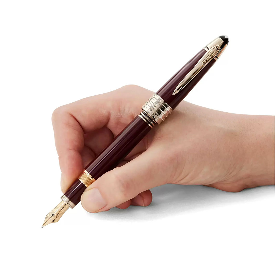 Penna Stilografica Montblanc Edizione Speciale dedicata a John F. Kennedy e alla Cattedrale di Notre-Dame realizzata in pregiata resina color Rosso Borgogna con Pennino in oro 585 / 14k lavorato a mano con speciale incisione.