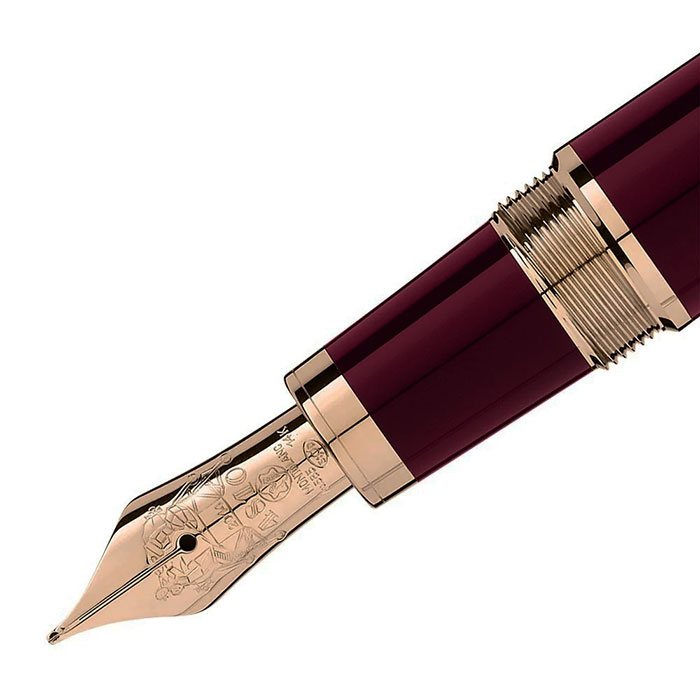 Omaggio a una delle figure più amate della storia contemporanea, l’Edizione Speciale John F. Kennedy offre riferimenti simbolici alla vita di J.F. Kennedy attraverso raffinati dettagli decorativi. La pregiata resina color bordeaux ricorda il celebre stile Ivy League di Kennedy e si ispira all’epoca in cui frequentava l’università di Harvard. Le iniziali “JFK” sono incise sulle finiture oro tonalità champagne della clip e i tre anelli finitura oro tonalità champagne del cappuccio rappresentano i tre fratelli di Kennedy. Per rendere omaggio ai sogni e alle speranze nazionali riposti nel programma spaziale Apollo di Kennedy, il pennino in oro Au 585 reca l’incisione del modulo lunare che atterrò sulla luna nel 1969. L’Edizione Speciale è coronata dall’emblema Montblanc in pregiata resina.