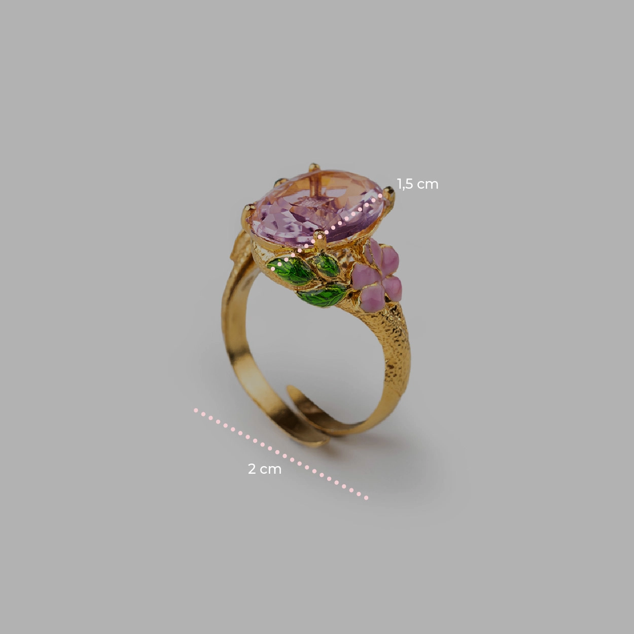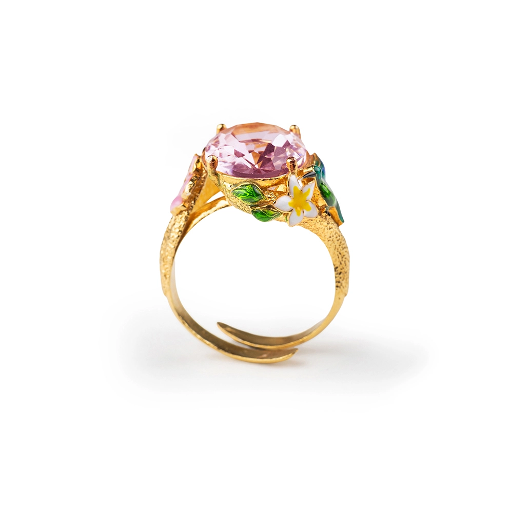 L’Anello Colibrì Gemma Isola Bella Gioielli, impreziosito da una prestigiosa placcatura in oro 18 kt, è il risultato di una sapiente lavorazione artigianale. Da un lato la grazia di un colibrì smaltato a mano e dall’altro la delicatezza dei fiori incorniciano una luminosa gemma centrale rosa, catturando la luce e l’essenza della nostra terra. Un gioiello che celebra la cura per il dettaglio e l’autenticità di un design interamente rifinito a mano.