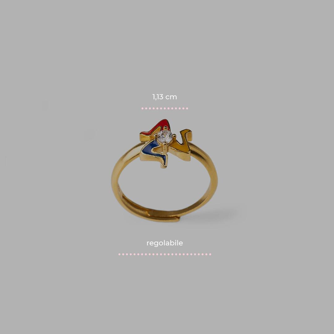 Anello in argento 925 placcato oro, smalti e cubic zirconia