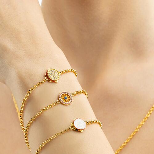 Bracciale da donna Isola bella in argento 925, placcato oro giallo, con Tamburello smaltato.