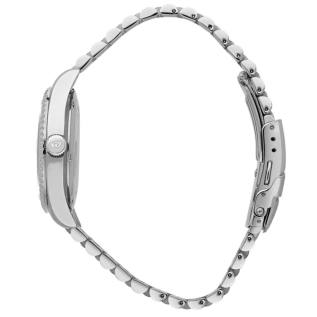 Orologio da Donna Philip Watch della collezione Caribe, Cassa in Acciaio lucido da 35 mm, Fondo serrato a vite, Vetro Zaffiro, Cinturino in Acciaio Argento maglia Jubilรจe, Chiusura Fibbia a deployante con clip di sicurezza, Water resistant: 10 atm, Garanzia Ufficiale 2 anni e Confezione Originale Philip Watch.
