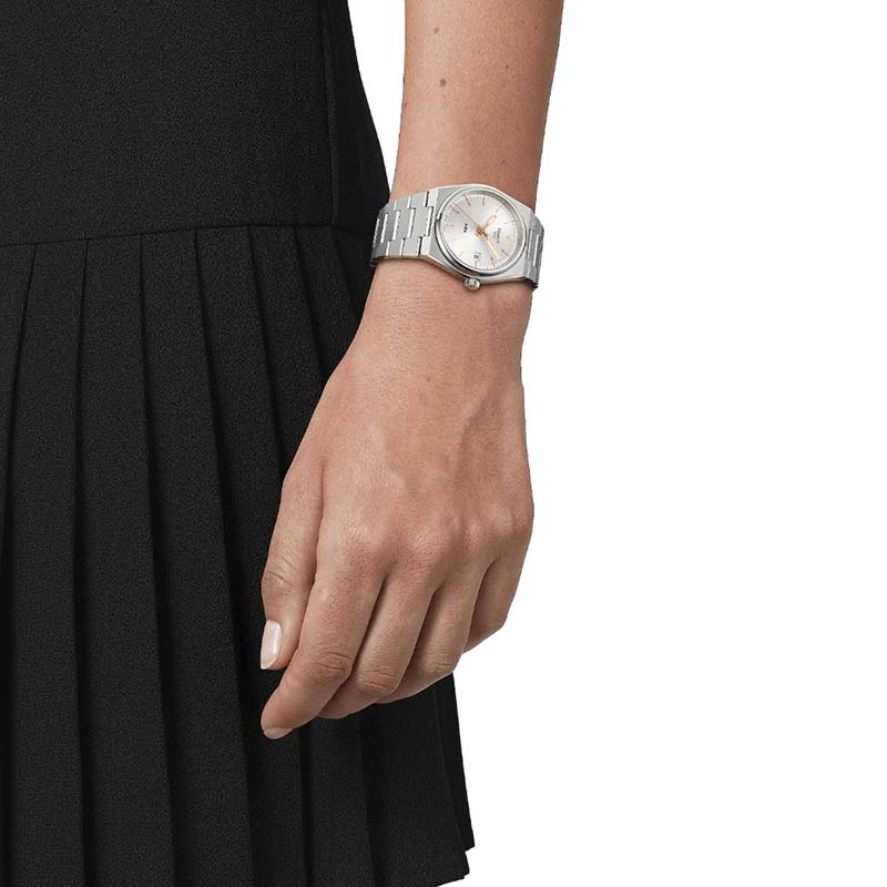 Orologio Unisex Tissot della nuova collezione “PRX 35 MM”, Movimento Al Quarzo Svizzero ETA F05.115, Cassa in Acciaio 316 L da 35 mm, Vetro Zaffiro Antigraffio, Fondo Serrato A Pressione, Bracciale in Acciaio Inossidabile, Chiusura a Farfalla A Scomparsa con Pulsanti, Impermeabilitร fino a 10 atm (100 m), Garanzia Ufficiale 2 anni e Confezione Originale Tissot.