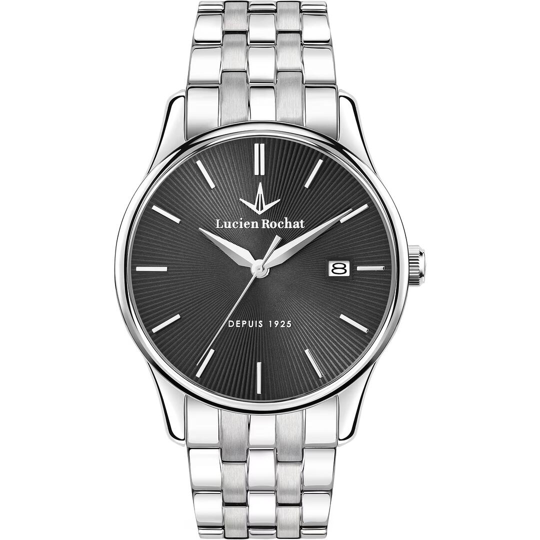 Orologio da Uomo Lucien Rochat della collezione MONTREUX, Cassa in Acciaio lucido da 39 mm, Fondo serrato a vite, Vetro Zaffiro, Bracciale in Acciaio Lucido e Satinato, Chiusura a deployante a scomparsa con pulsanti di sicurezza. Water resistant 5 atm, Garanzia Ufficiale 2 anni e Confezione Originale Lucien Rochat.