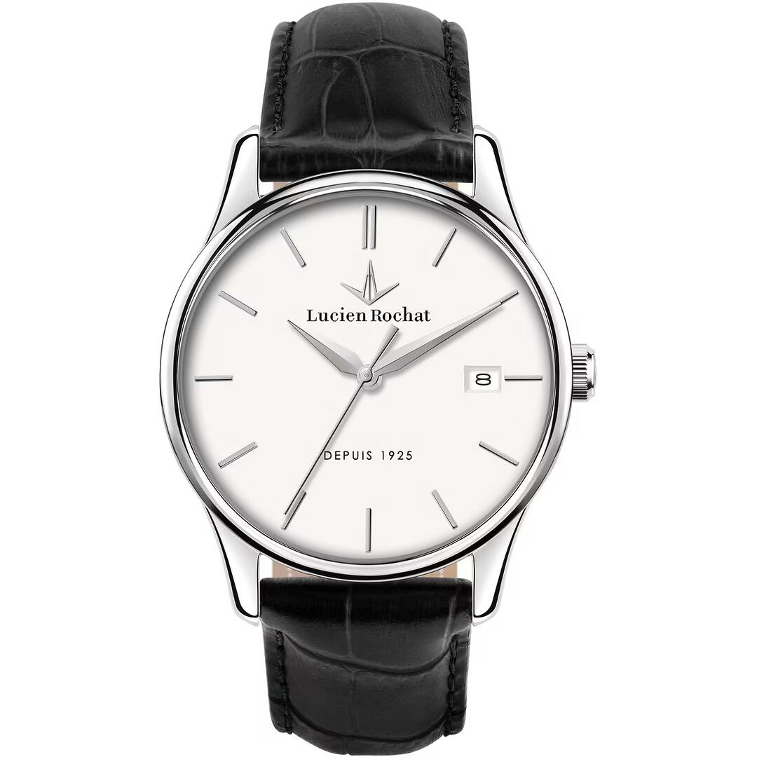 Orologio da Uomo Lucien Rochat della collezione MONTREUX, Cassa in Acciaio lucido da 39 mm, Fondo serrato a vite, Vetro Zaffiro, Cinturino in Pelle Naturale di Vitello, Chiusura Fibbia ad ardiglione. Water resistant 5 atm, Garanzia Ufficiale 2 anni e Confezione Originale Lucien Rochat.