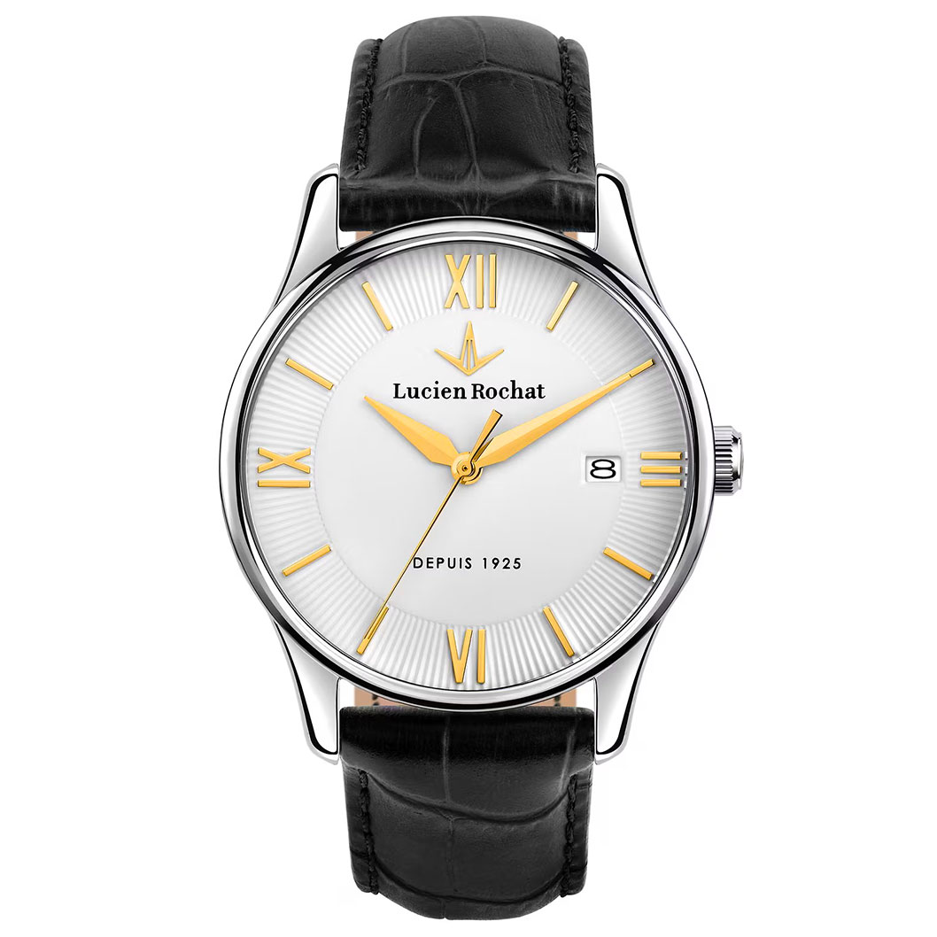 Orologio da Uomo Lucien Rochat della collezione MONTREUX, Cassa in Acciaio lucido da 39 mm, Fondo serrato a vite, Vetro Zaffiro, Cinturino in Pelle Naturale di Vitello, Chiusura Fibbia ad ardiglione. Water resistant 5 atm, Garanzia Ufficiale 2 anni e Confezione Originale Lucien Rochat.