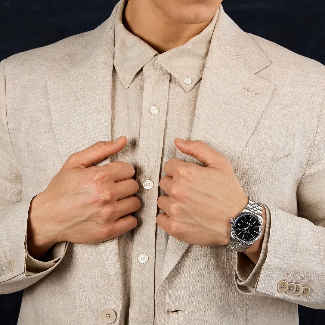 Orologio da Uomo Philip Watch della collezione Caribe, Cassa in Acciaio lucido da 39 mm, Fondo serrato a vite, Vetro Zaffiro, Cinturino in Acciaio Maglia Jubilรจe, Chiusura Fibbia a deployante con clip di sicurezza, Water resistant: 10 atm, Garanzia Ufficiale 2 anni e Confezione Originale Philip Watch.