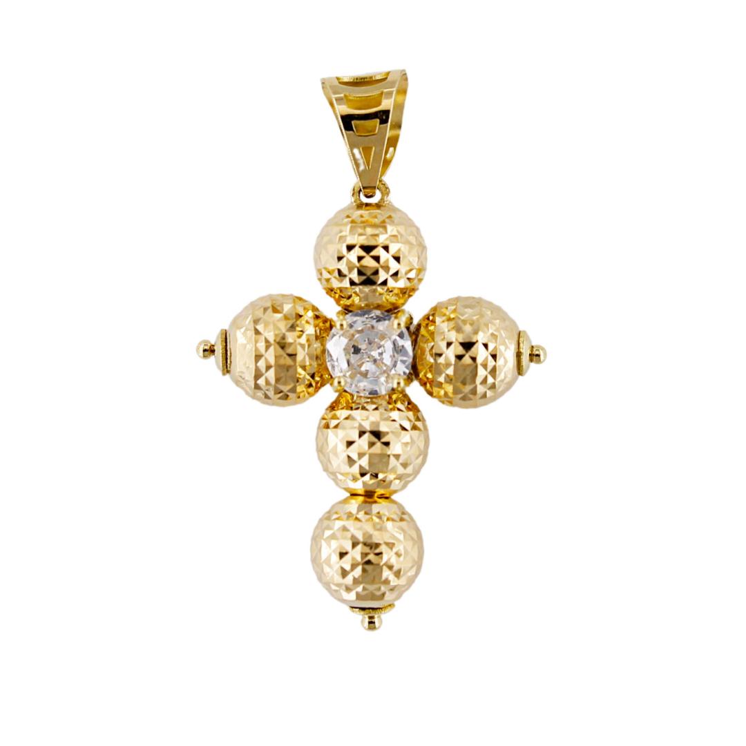 Ciondolo Collana Croce Sfere 6 mm In Oro Giallo 18 kt Diamantate Laser