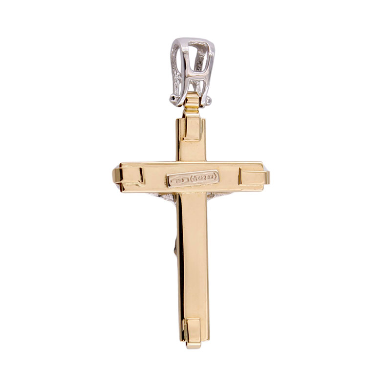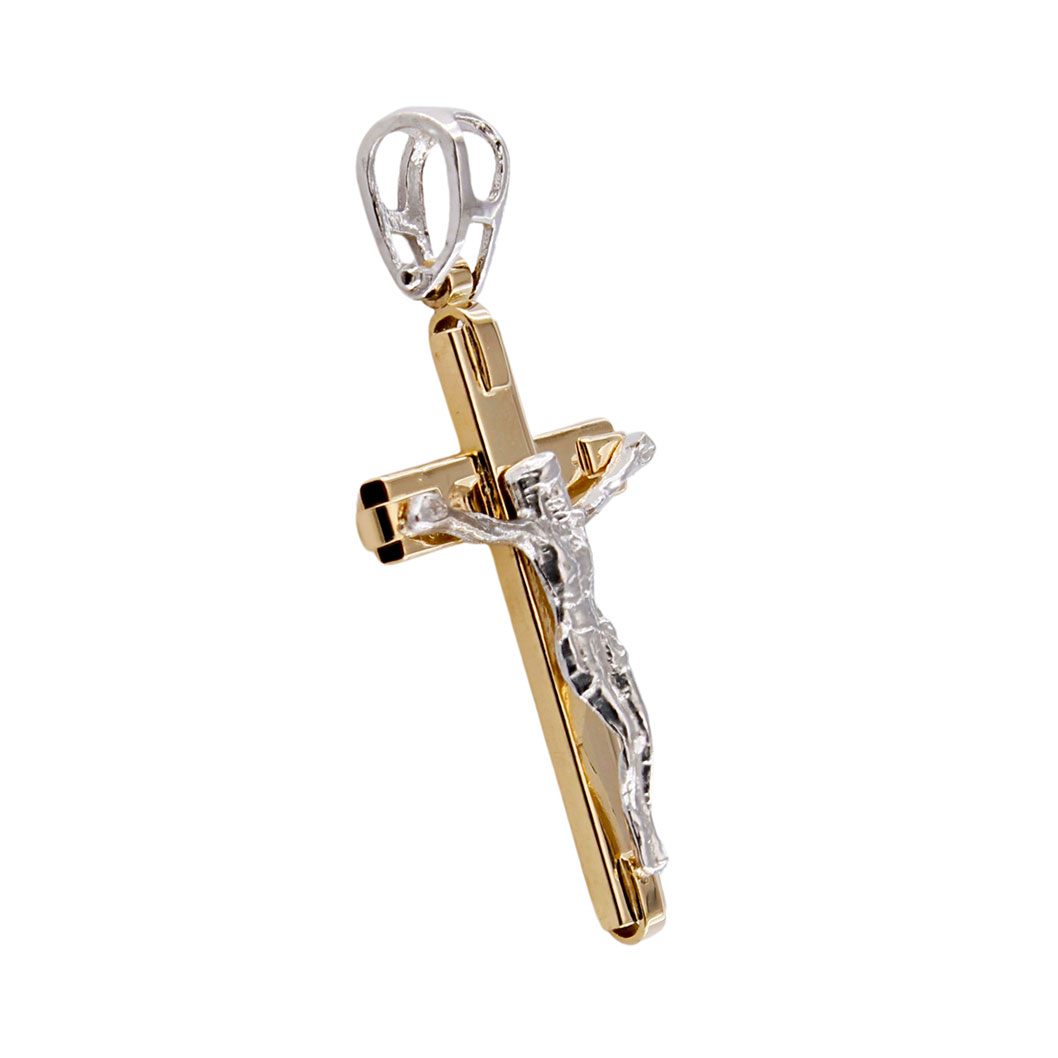 Ciondolo Croce Oro Giallo 18 kt con Gesù in Oro Bianco 18 kt