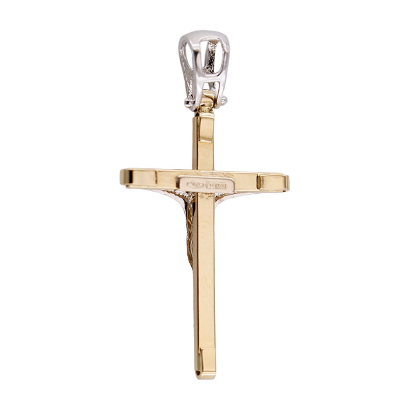 Ciondolo Croce Oro Giallo 18 kt Laser con Gesù in Oro Bianco 18 kt