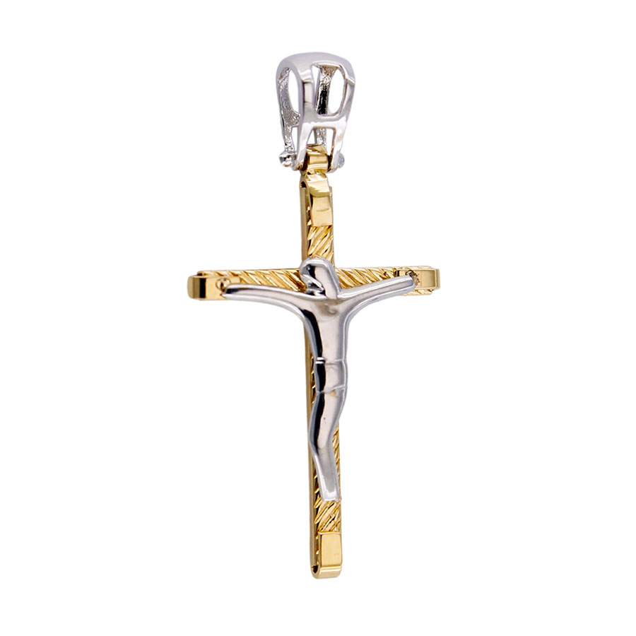 Ciondolo Croce Oro Giallo 18 kt Laser con Gesù in Oro Bianco 18 kt