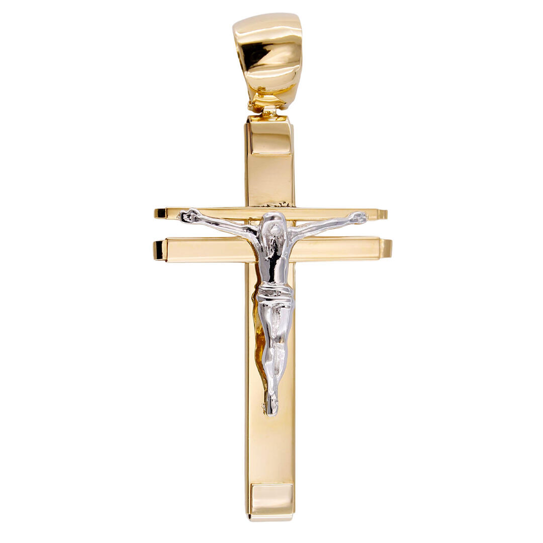 Croce Pendente per Collana in Oro Giallo 18 kt con Gesù in oro Bianco