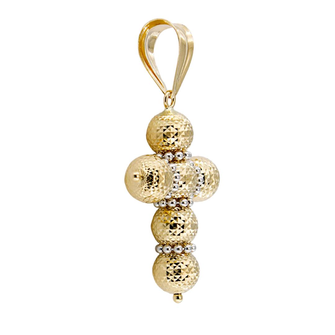 Ciondolo Pendente per Collana Forma Croce con Sfere diamantata a laser di ultima generazione da 10 mm in Oro Giallo 18 kt.