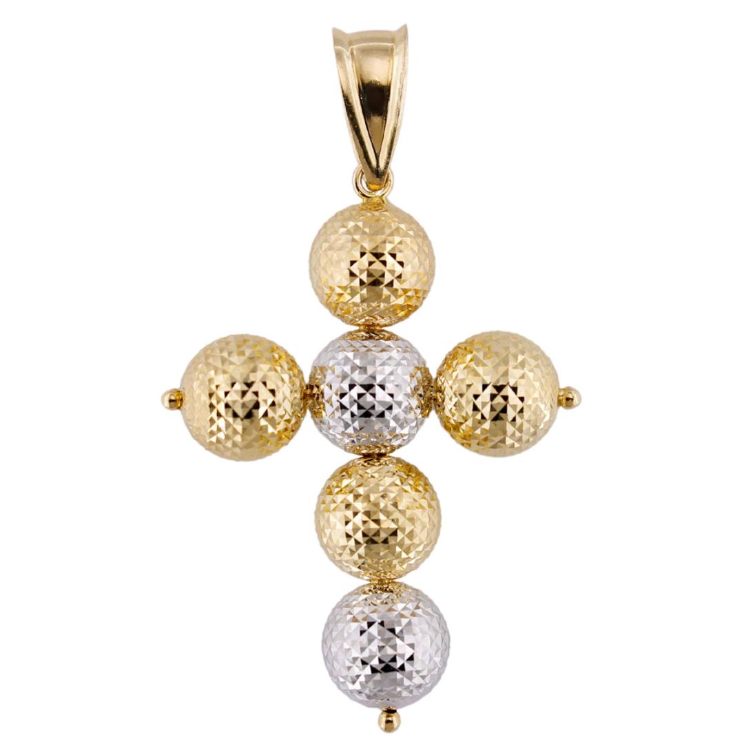 Pendente Croce Sfere Diamantate 10 mm In Oro Giallo E Bianco 18 kt